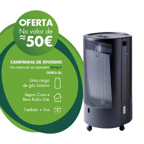 Todos os aquecedores Spring-it vêm equipados de origem com lira e redutor adaptados ao consumo Rubis Gás e com dois sistemas de segurança.