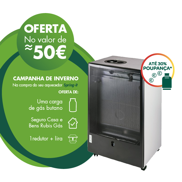 Todos os aquecedores Spring-it vêm equipados de origem com lira e redutor adaptados ao consumo Rubis Gás e com dois sistemas de segurança.